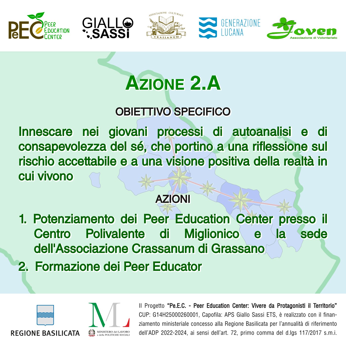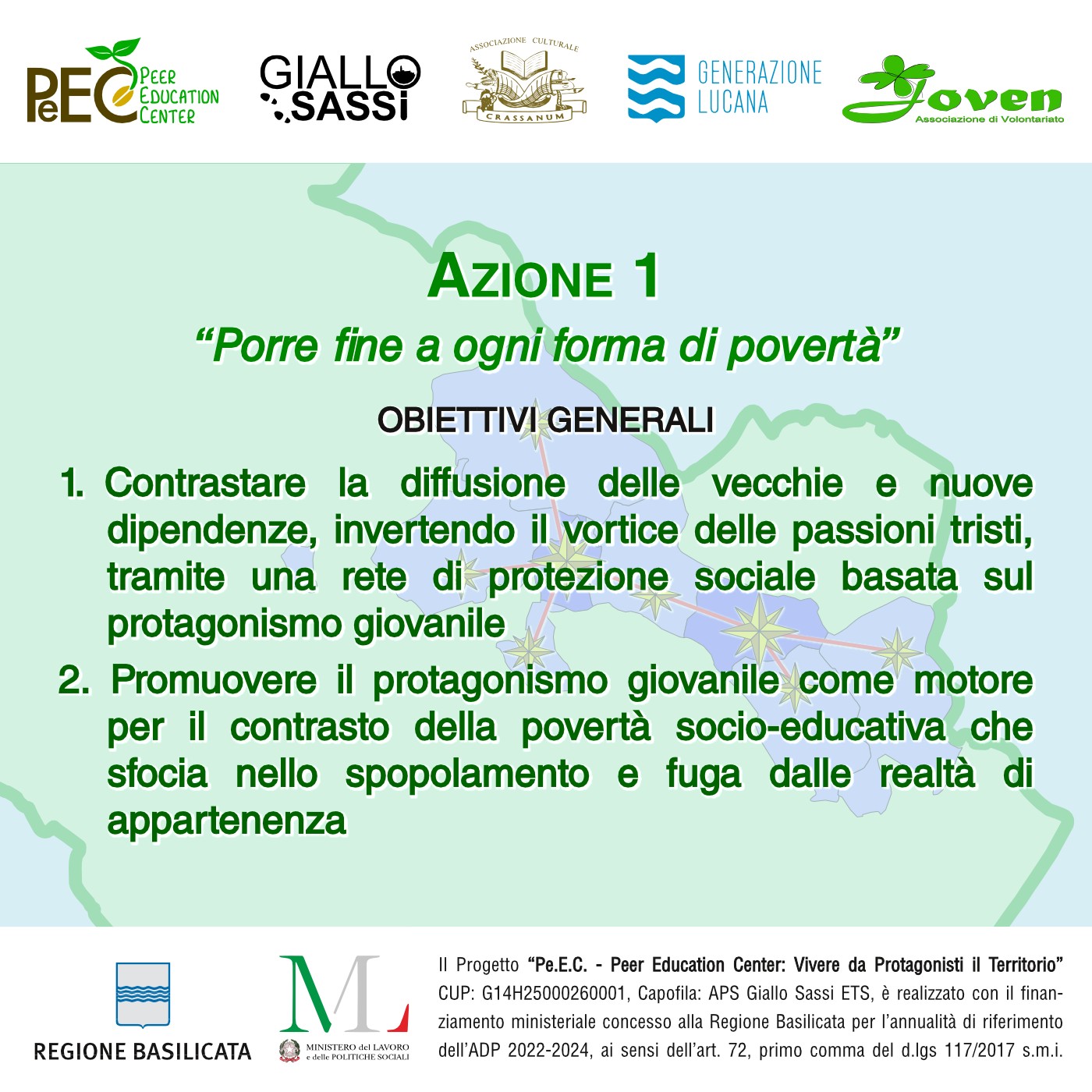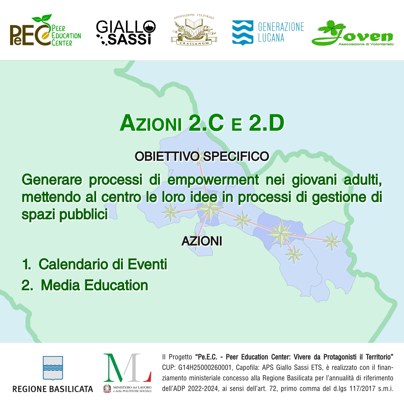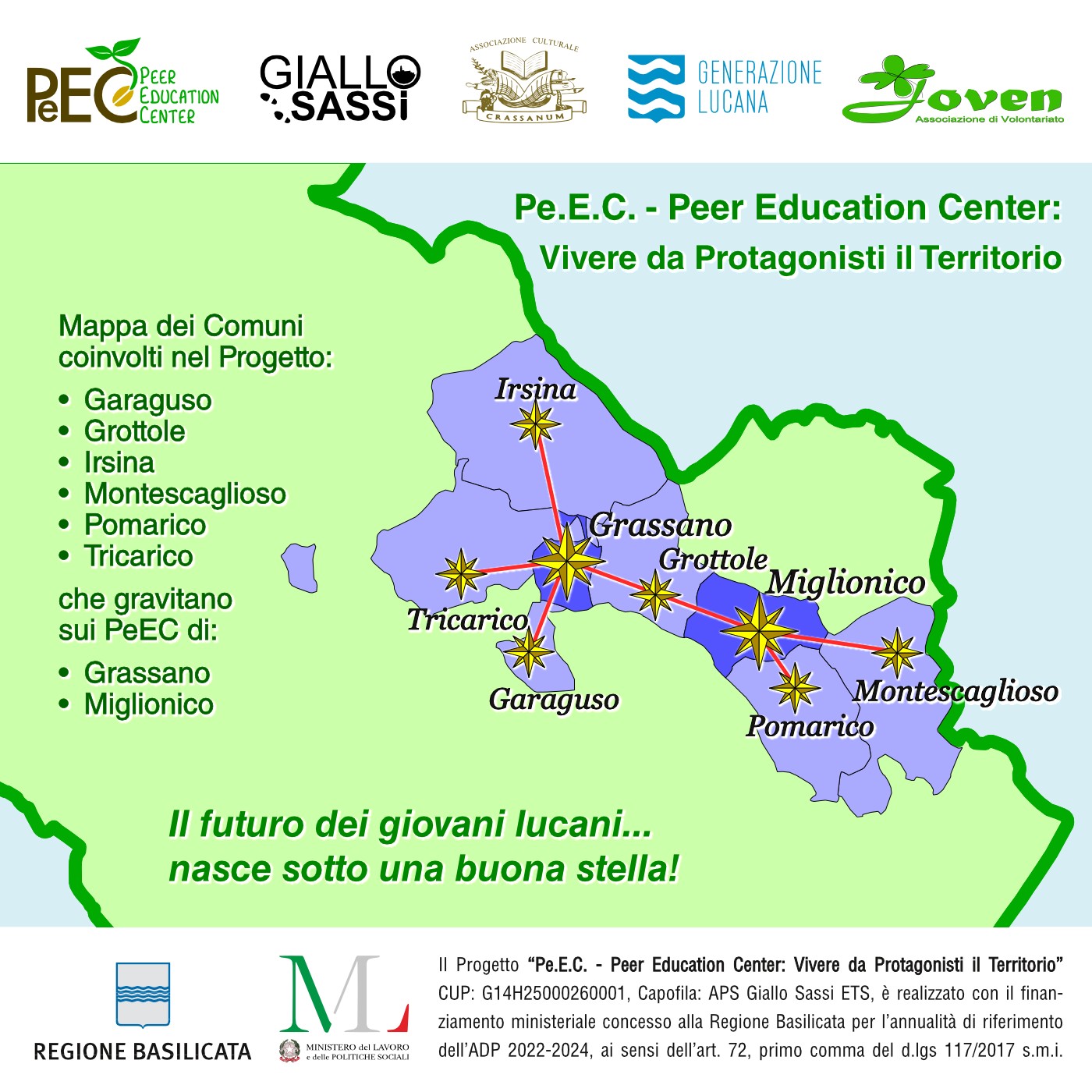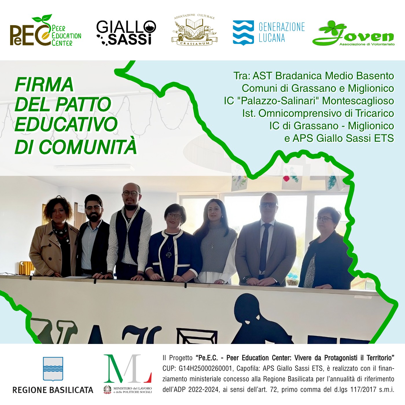 Descrizione Il documento è il Patto di Comunità relativo al progetto "Peer Education Center: Vivere da Protagonisti il Territorio" (Pe.E.C.) , promosso da APS Giallo Sassi ETS come Capofila. Allegati 2025.10.30 - Protocollo Progetto PeeC - AST + Comuni Bradanica Medio Basento + Scuole - Bando ETS Basilicata 2025 - APS Giallo Sassi ETS-1 pdf - 2,02 MB 01 - Mappa Comuni Progetto PeEC - B3S-Basilicata-1 jpg - 351,2 KB 02 - Dati Progetto PeEC - B3S-Basilicata jpg - 265 KB 03 - Azione 1.1 Progetto PeEC - B3S-Basilicata jpg - 372,3 KB 04 - Azione 1.2 Progetto PeEC - B3S-Basilicata jpg - 355,1 KB 05 - Azione 2.A Progetto PeEC - B3S-Basilicata jpg - 362,1 KB 06 - Azioni 2.C e 2.D Progetto PeEC - B3S-Basilicata jpg - 278,8 KB 07 - Firma Patto Comunità Progetto PeEC - B3S-Basilicata jpg - 379,8 KB Ulteriori informazioni